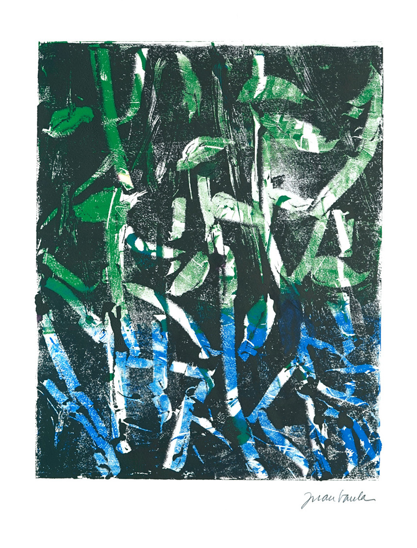 La técnica del monotipo ha sido practicada por artistas de la talla de Matisse, Picasso, William Blake o Degas, entre otros. En mi caso estoy empleando cristal, láminas de metacrilato o policarbonato como matriz y papel Velin de Arches para grabado de 160 o 250 gr. Para el manchado de la plancha, uso tintas de grabado al agua de Charbonel o Schmincke.
